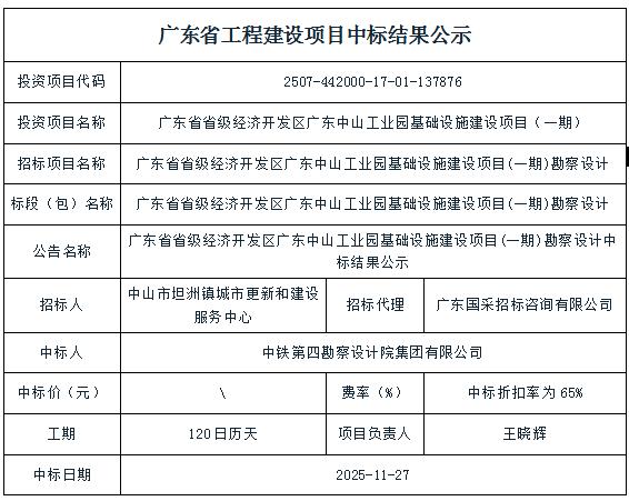 广东省工程建设项目中标结果公示